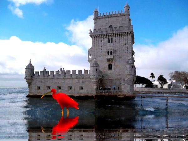 Wonder what kind of bird that is? He uses a basic mirroring technique to get the symmetrical reflection of bird and water...